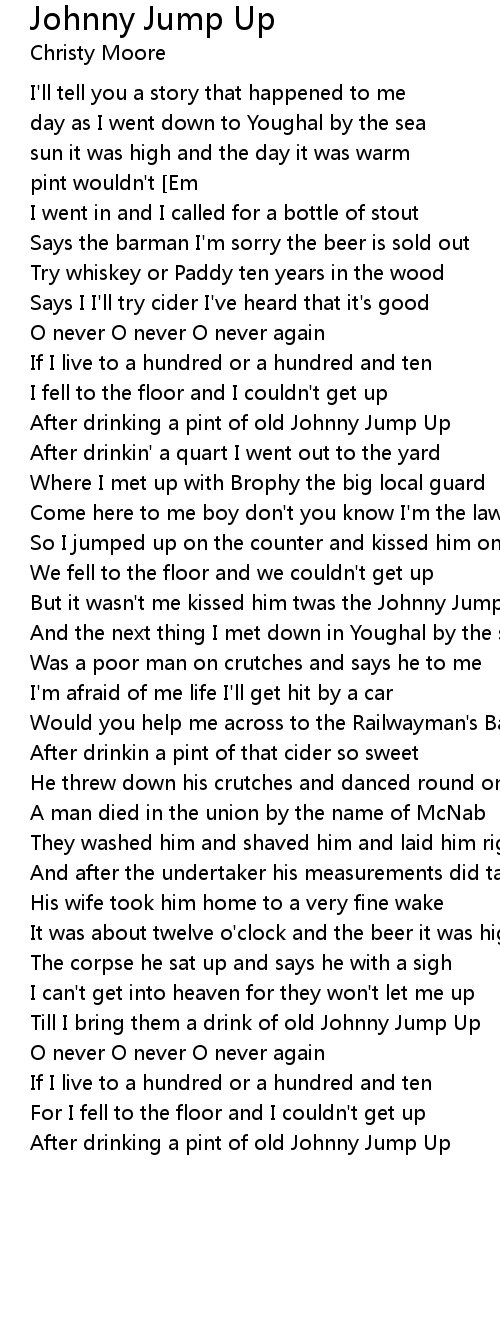 Your Johnny Jump Up Lyrics picture are accessible in this blog. Johnny Jump Up Lyrics are a subject that is being searched for and favored by netizens nowadays. You can Save the Johnny Jump Up Lyrics here. Save all royalty-free pics.